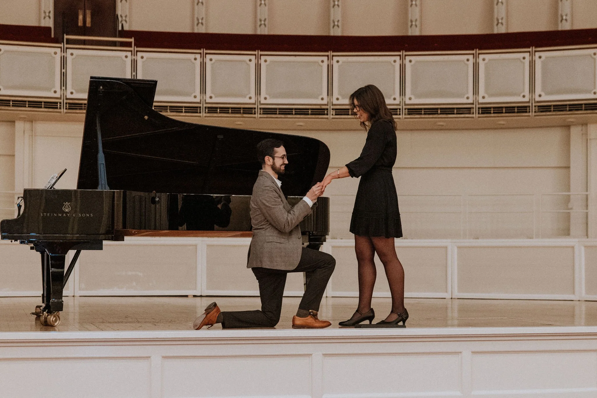 Alex planned the most epic proposal for his fiancée Sara. The two met through their love of music so the perfect place for this special proposal was on the stage of the Chicago Symphony Orchestra! Alex led Sara on stage under the guise of a private tour and played her a song on the grand piano. It was an unforgettable moment!
