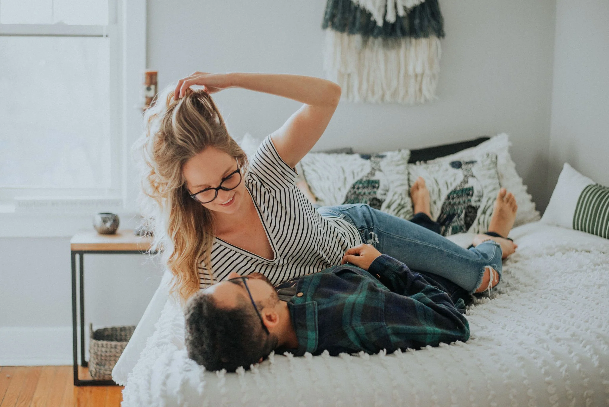 For this couple, home is where the heart (and their bearded dragon) is. It was a chilly November day and it was perfect for porch sitting with blankets and coffee and cuddling in bed in their sundrenched Oak Park apartment.