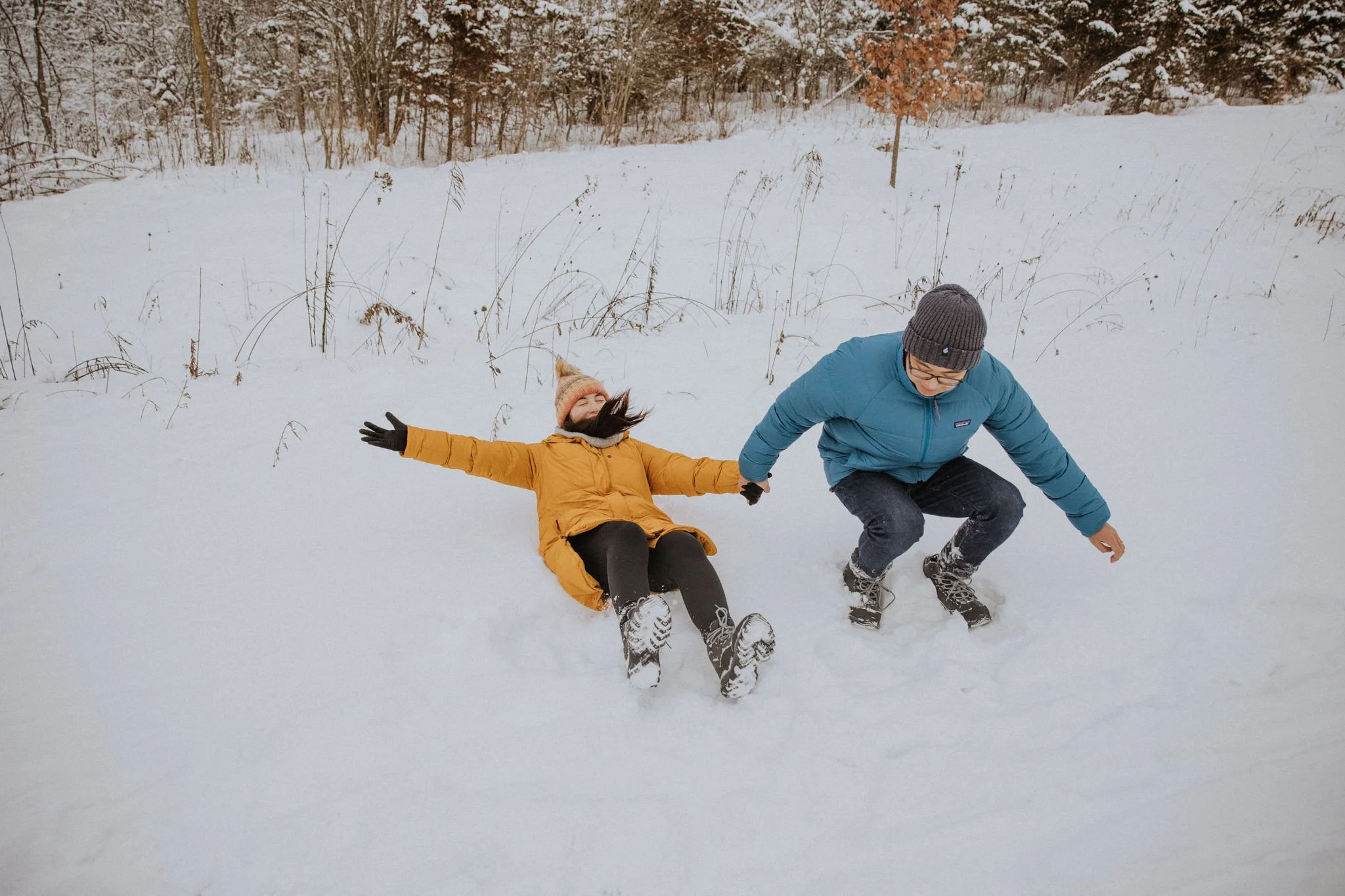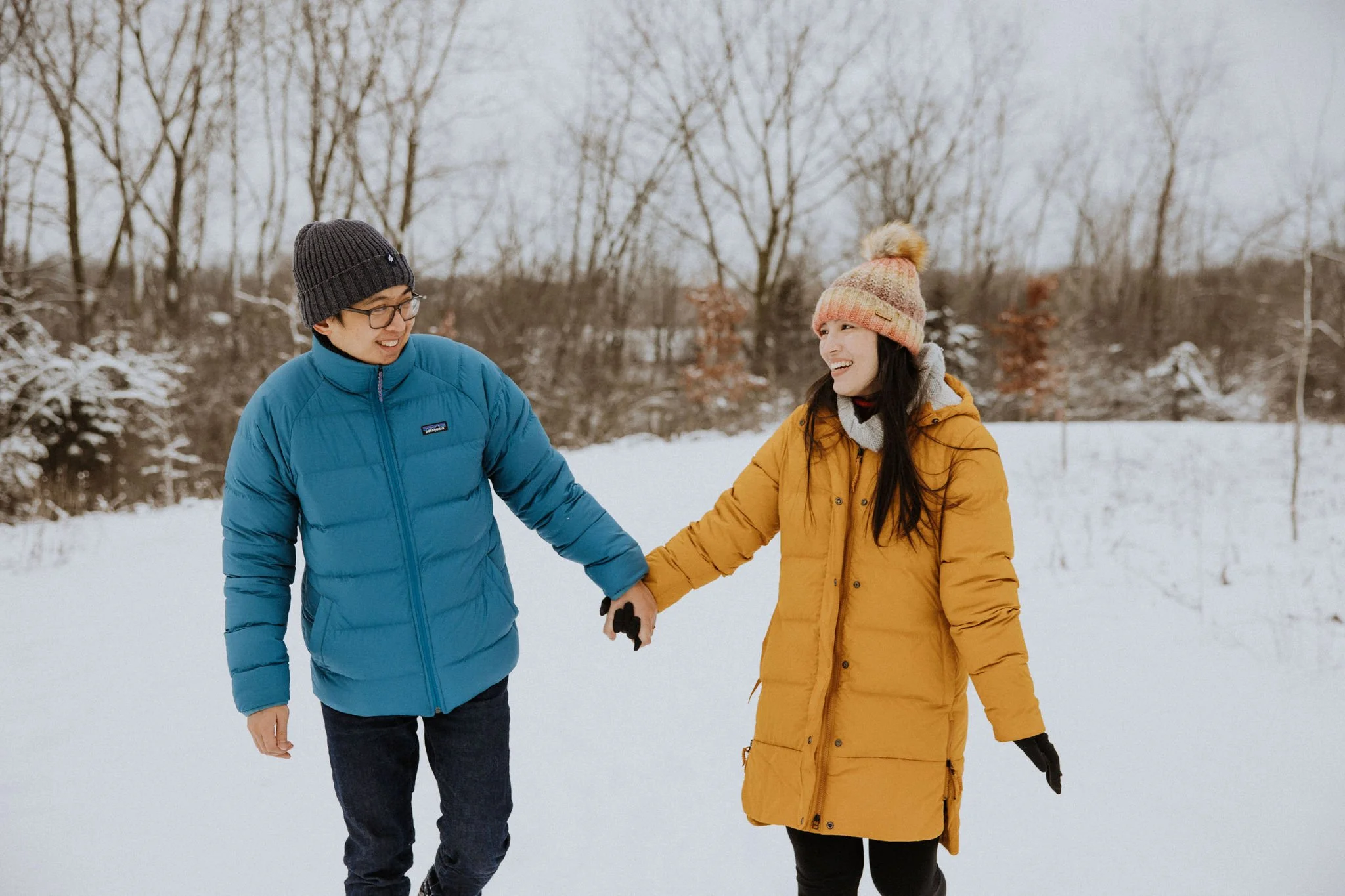 Tasha and Nate walked hand in hand on a walk they take often. Their local forest preserve turned into a snowy wonderland and the photos are just as magical.